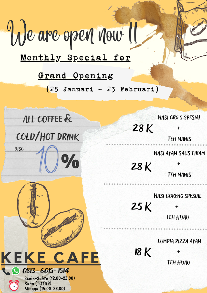 Welcome to KeKe Cafe, a delightful spot tucked away at Gg. Berkat No.28 in Medan. Offering an inviting ambiance, this cafe is a haven for coffee lovers and casual hangouts alike. The serene atmosphere is perfect for spending quality time with friends or family, free from the hustle and bustle of busy streets.